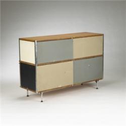 Charles and Ray Eames ESU 200-N Herman Miller USA, 1952 birch plywood, painted masonite, steel 47"w x 17"d x 32"h This ESU is a fine example of the second, improved version of the Eames Storage Units, with strengthened legs and more refined drawer construction details.