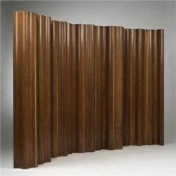 Charles and Ray Eames custom FSW-12 Herman Miller USA, c. 1949 molded walnut plywood, canvas 107"w x 67"h The folding screens were offered in three standard sizes, 6, 8, and 10 panels. This 12 panel version is a unique, custom-ordered variation.