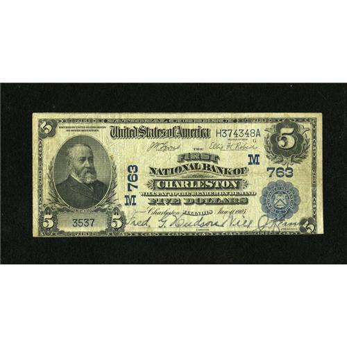 <B>Charleston, IL</B></I> - $5 1902 Date Back Fr. 590 <B>The First NB</B></I> Ch. # (M)763<BR>Stamped signatures of the President and Cashier remain bold. The paper is most pleasing for the grade. Our records indicate only one other note from this institution has made it to public auction in the last year and a half. <B>Fine.</B></I><BR><I>From The Lincoln Collection</B></I><BR><BR><b>Shipping:</b> Coins & Currency (<a target="_blank" href="http://www.heritageauctions.com/common/shipping.php">view shipping information</a>)