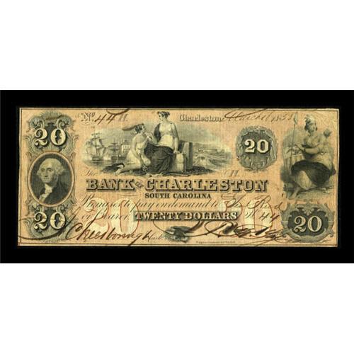 <B>Charleston, SC- Bank of Charleston</B></I> $20 March 16, 1858 G20b Sheheen 79<BR> Another tough note, this also fully tinted. <B>Very Fine.</B></I><BR><BR><b>Shipping:</b> Coins & Currency (<a target="_blank" href="http://www.heritageauctions.com/common/shipping.php">view shipping information</a>)