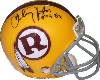 Charley Taylor is a former American football wide receiver in the National Football League for the Washington Redskins. Taylor was inducted into the Pro Football Hall of Fame in 1984. During his tenure with the Redskins they reached the Super Bowl in 1973, (Super Bowl VII), after the 1972 season. They also made the playoffs four other times in the 1970s. Charley Taylor has hand autographed this Washington Redskins Throwback Yellow (1970-1971) Riddell mini helmet with HOF 84 Inscription. FI Hologram and Certificate of Authenticity from Athlon Sports.