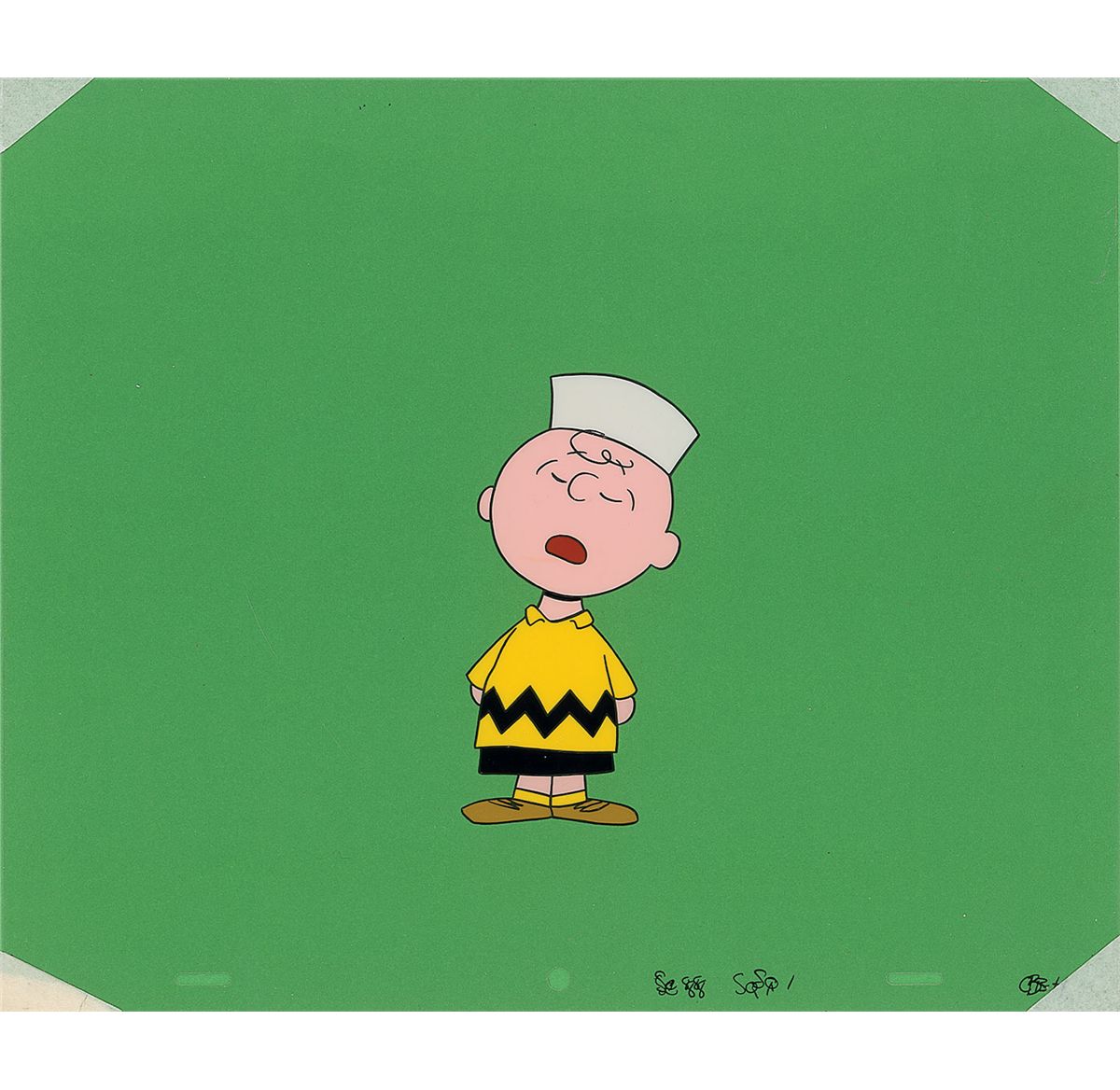 (Bill Melendez Productions, 1969) Original production cel featuring Charlie Brown from It Was a Short Summer, Charlie Brown. The cel is placed on a color copy background. Image measures 2.75 x 5.25, with overall dimensions of 12.5 x 10.5. In fine condition.