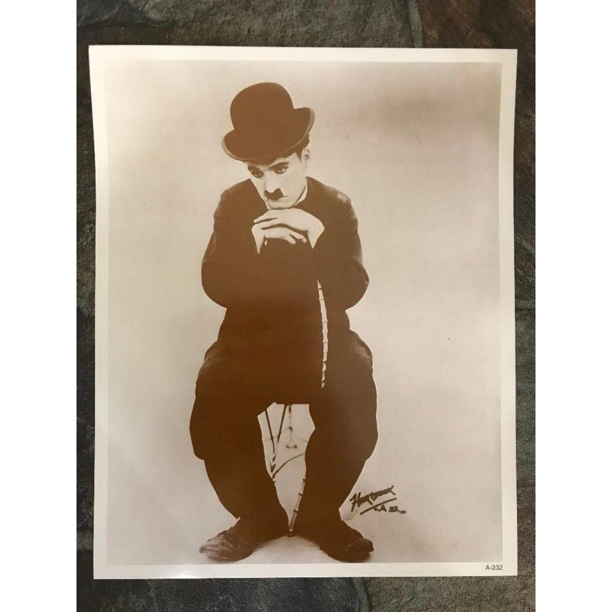Charlie Chaplin as the Little Tramp character sepia-tone photo print. Created in the early 1990's for The American Heritage Galleries. Printed on heavy cardstock. 8" X 10".Â