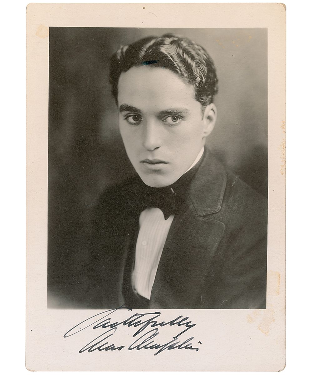 Fantastic vintage matte-finish 5 x 7 photo of Chaplin as a young man, boldly signed in the lower border in black fountain pen, “Faithfully, Chas. Chaplin.” In fine condition, with a central tack hole to the top border, scattered light soiling to the borders, and light wear to the corner tips.