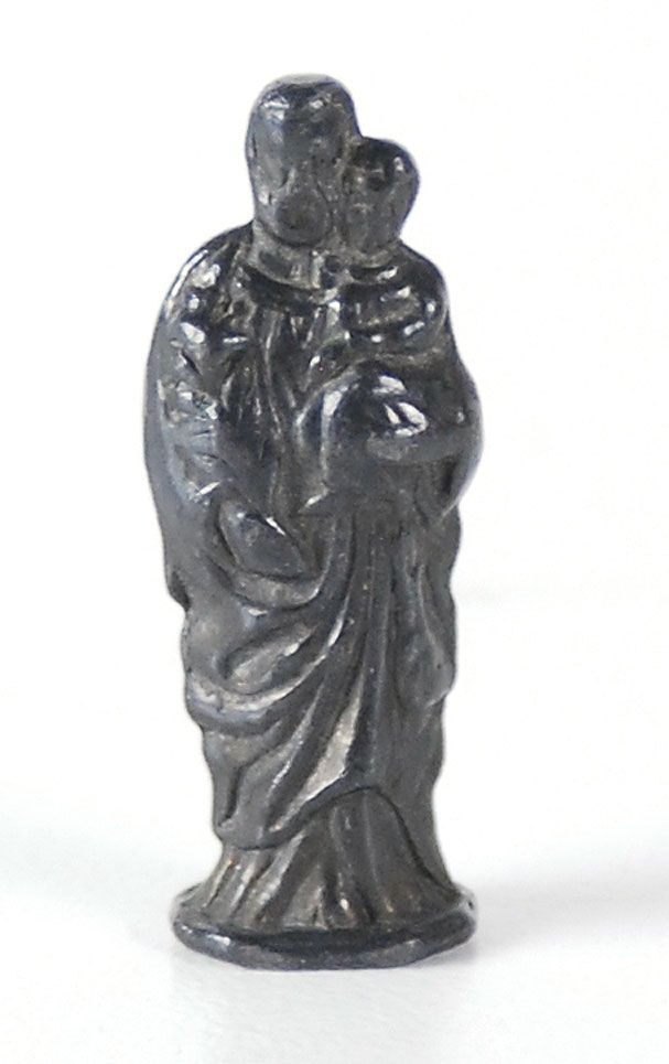 Accompanied by a 2001 letter of authenticity from Duke, which reads, in part: “This is to certify that this one (1) inch tall St. Christopher statue accompanied me aboard our Lunar Module Orion to the Descartes Highlands…This statue then spent the next three days on the surface of the Moon housed in my Personal Preference Kit (PPK) in the Orion. This St. Christopher statue was presented to me by my sister, Betsy, before our liftoff…These items, though personal, were a part of the official stowage list for the Apollo 16 mission. This statue is, to the best of my knowledge, a one of a kind treasure here on Earth of the religious artifacts carried to the surface of the Moon.” Also accompanied by a letter from Duke certifying the Jerusalem tile. In fine condition.