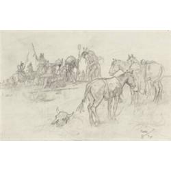 Charlie Dye (1906-1972). Graphite on paper. Study for "Battle Plan." 23" x 35". Estimate $2,000-$…