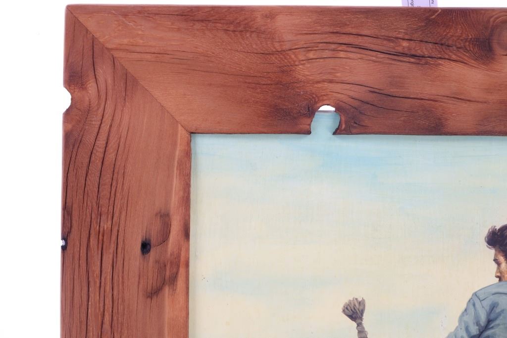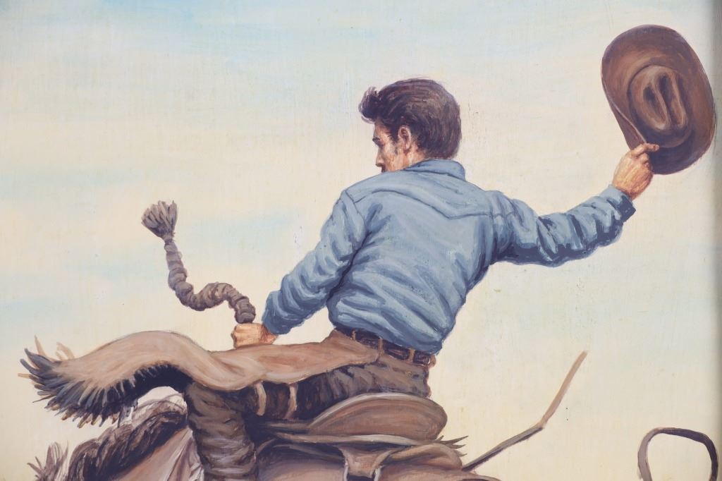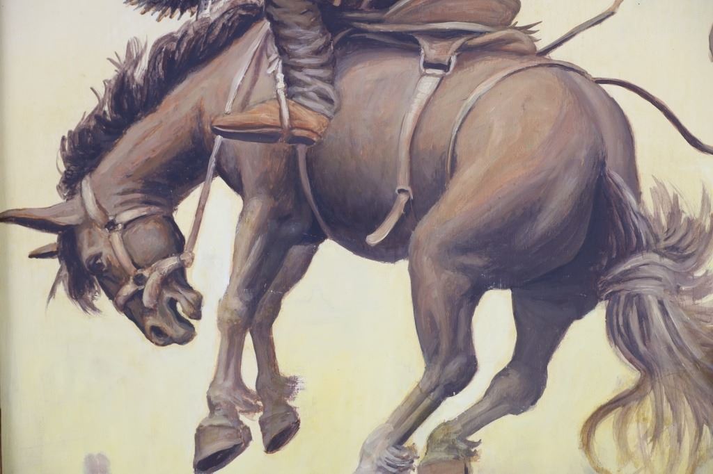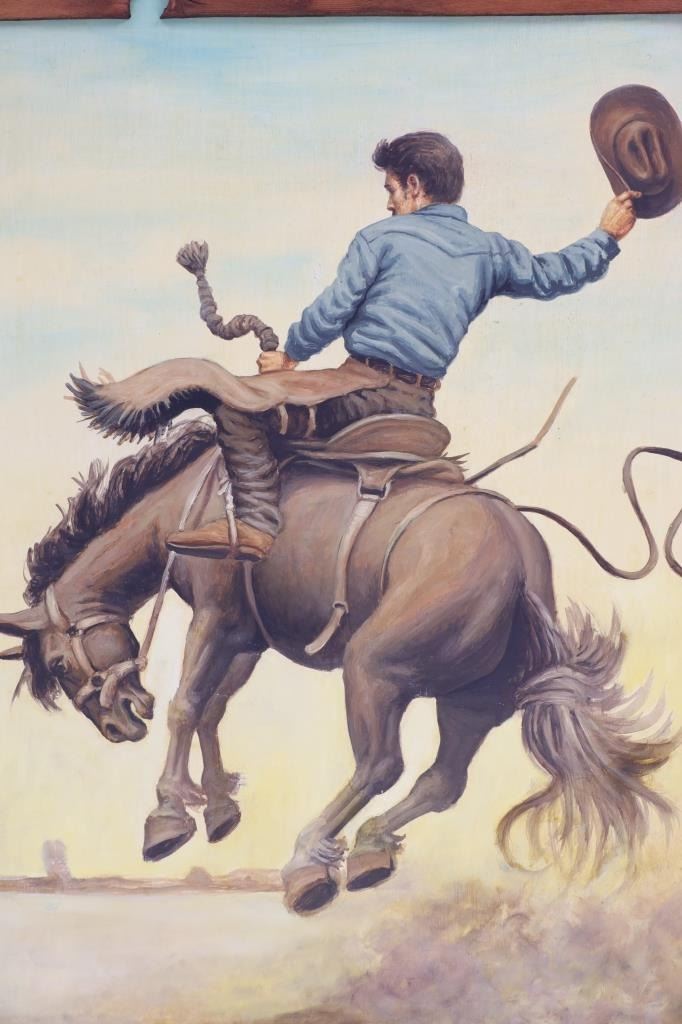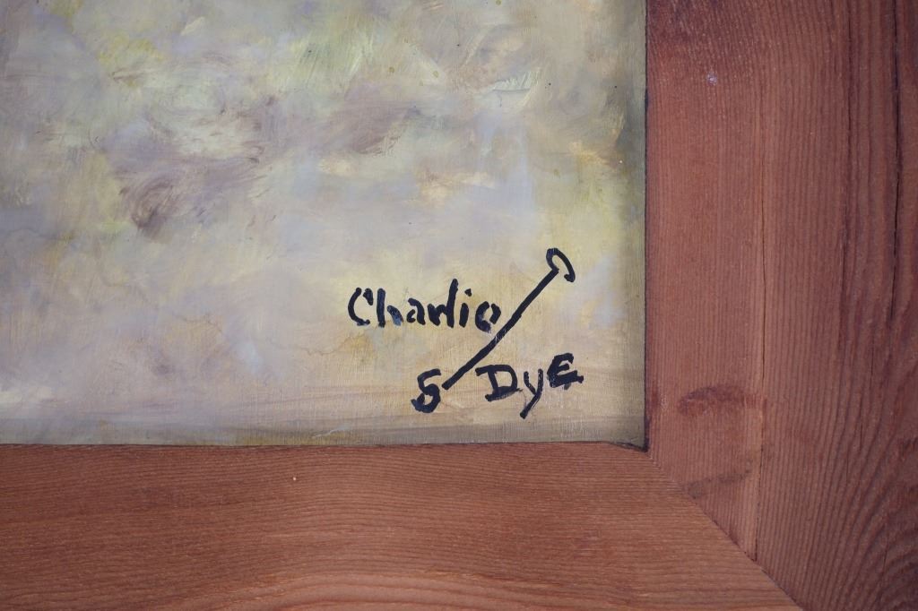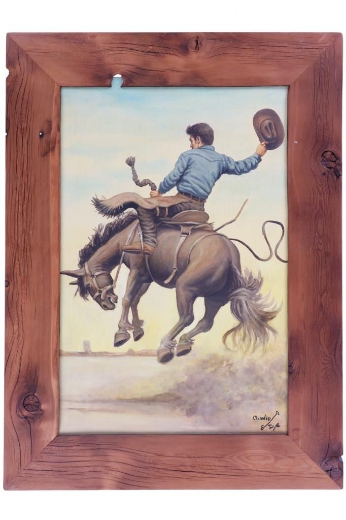 For your consideration is an original, oil on canvas painting done by renowned artist, Charlie Dye (1906-1972) in the 1940-50s. Charlie Dye (born Charles Robert Culbertson Dye III) was a major American western artist and illustrator whose authentic cowboy paintings helped define mid-20th-century Western art. Raised in Canon City, Colorado, he grew up working on ranches around Colorado, Arizona, and California, painting and drawing from early childhood. He also played semi-pro football and worked as a bodyguard before embracing art. A riding accident in his early twenties served as a turning point: while in the hospital, he stumbled across artwork reproductions by Charles M. Russell, which inspired his artistic career. Following that epiphany, he studied at the School of the Art Institute of Chicago in the late 1920s, and later at night with illustrator Harvey Dunn after moving to New York City in 1936. In New York, he worked as a freelance illustrator for publications such as The Saturday Evening Post, Outdoor Life, Argosy, and adventure pulps. As the popularity of pulp illustration declined in the 1950s, Dye returned to his western origins, painting landscapes and cowboy-themed pieces. In 1962, he relocated to Sedona, Arizona, and began working only on Western fine art. In 1965, he co-founded the Cowboy Artists of America with Joe Beeler, John Hampton, and George Phippen, and served as its second president. His oil paintings realistically depict ranch life, from bronc-saddling and cattle drives to Native American lodges and stagecoaches. Works such as Saddling a Bronc, The Liar's Hour, and Morning in Cow Camp highlight his meticulous drafting and explosive compositions. Dye passed away in 1972 in Sedona, Arizona. This original oil on canvas depicts a man riding a bucking bronco as the sun sets in the distance. He is wearing chaps and holds his cowboy hat in his right hand as its up in the air for balance. It is signed in the bottom in black reading, "Charlie Dye". It shows good condition overall with little to no wear present and no signs of damage is noted. The artwork measures 26 1/2" L x 17 7/8" W, while the entire piece measures 33" L x 24 1/4" W x 3/4" D. It weighs 4 pounds and 12 ounces.*