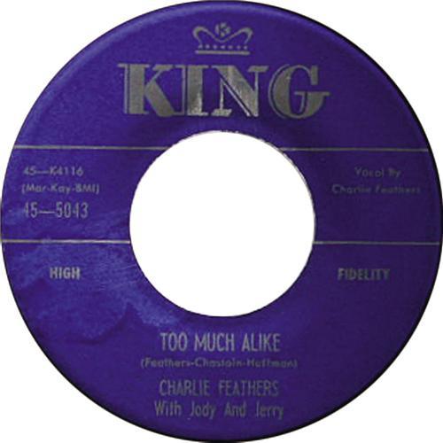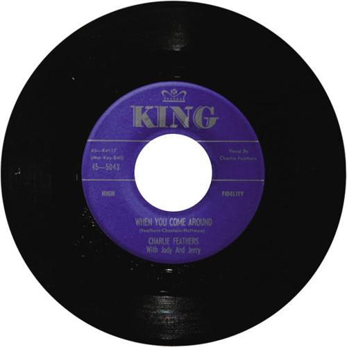 <B>Charlie Feathers "When You Come Around"/ "Too Much Alike" 45 (King 5043, 1957).</B></I> The Rockabilly artist had almost as many labels (11!) as he did singles (15). This was his fourth release for King, the most he recorded on any label. His records are treasured by the genre's aficionados. Condition: Qualified MT 9 - the vinyl is near perfect, but Side 2 has a minor stain on the label.<BR><BR><b>Shipping:</b> Recordings (<a target="_blank" href="http://www.heritageauctions.com/common/shipping.php">view shipping information</a>)