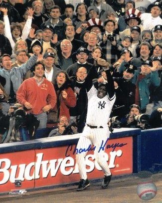 Charlie Hayes hit .284 over 20 games in for the Yankees during the season, and was added to the postseason roster. Hayes played in five of the six games in the 1996 World Series, collecting three hits and one run batted in, along with five strikeouts. He caught Mark Lemke's pop up at third base to end the game and give the Yankees their first World Series championship since 1978. Charlie Hayes has hand signed this 1996 World Series New York Yankees 8x10 Photo. Leaf Authentics Hologram and Certificate of Authenticity from Athlon Sports.