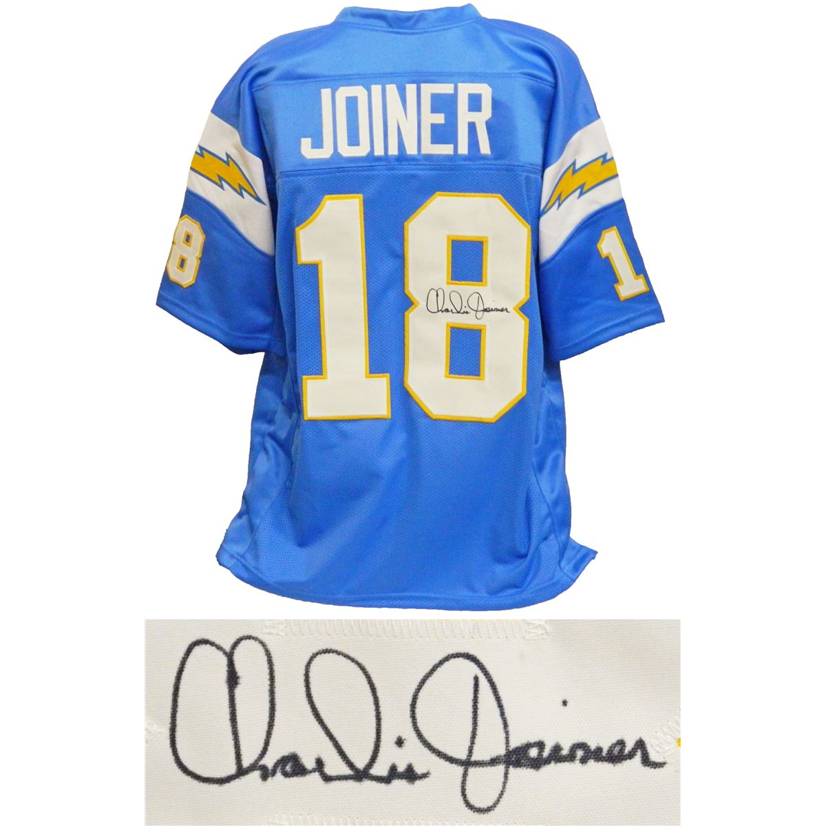 Charlie Joiner signed powder blue throwback custom football jersey. Item comes with a Schwartz Sports Memorabilia tamper-proof numbered hologram and Certificate of Authenticity which can be verified online.