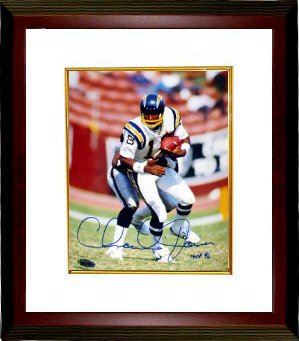 Charlie Joiner was elected into the Pro Football Hall of Fame in 1996. It was with the Chargers' high flying "Air Coryell" offense under coach Don Coryell that Joiner had his most productive years, exceeding 1,000 yards receiving in a season four times and going to three Pro Bowls (1976, 1979-80). Joiner was selected All-Pro in 1980 and 2nd Team All-AFC in 1976. Although he never played in a Super Bowl, Joiner helped the Chargers reach the AFC title game in the 1980 and 1981 seasons. Charlie Joiner has hand autographed this Chargers 8x10 Color Photo with HOF 96 Inscription. Custom White Mat and Premium Mahogany Framed as shown.Certificate of Authenticity from Athlon Sports.