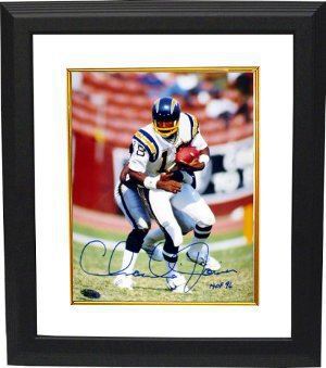 Charlie Joiner was elected into the Pro Football Hall of Fame in 1996. It was with the Chargers' high flying "Air Coryell" offense under coach Don Coryell that Joiner had his most productive years, exceeding 1,000 yards receiving in a season four times and going to three Pro Bowls (1976, 1979-80). Joiner was selected All-Pro in 1980 and 2nd Team All-AFC in 1976. Although he never played in a Super Bowl, Joiner helped the Chargers reach the AFC title game in the 1980 and 1981 seasons. Charlie Joiner has hand autographed this Chargers 8x10 Color Photo with HOF 96 Inscription. Custom White Mat and Premium Black Framed as shown.Certificate of Authenticity from Athlon Sports.