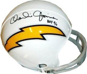Charlie Joiner was elected into the Pro Football Hall of Fame in 1996. It was with the Chargers' high flying "Air Coryell" offense under coach Don Coryell that Joiner had his most productive years, exceeding 1,000 yards receiving in a season four times and going to three Pro Bowls (1976, 1979-80). Joiner was selected All-Pro in 1980 and 2nd Team All-AFC in 1976. Although he never played in a Super Bowl, Joiner helped the Chargers reach the AFC title game in the 1980 and 1981 seasons. Charlie Joiner has hand autographed this San Diego Chargers Riddell Throwback mini helmet with HOF 96 inscription. Certificate of Authenticity from Athlon Sports.
