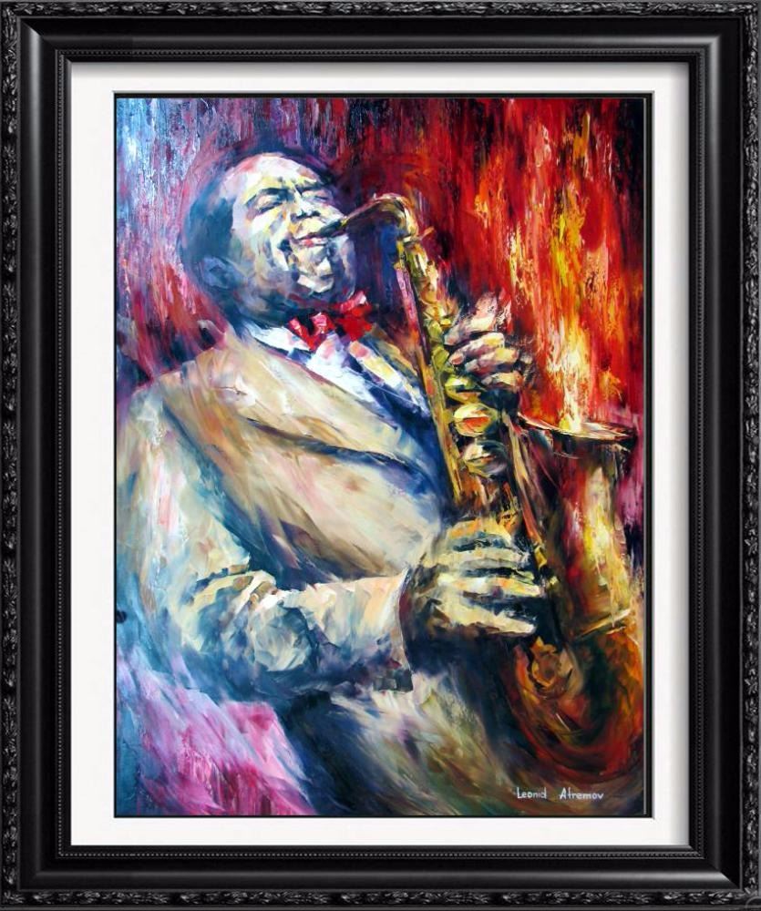Leo Ofremon | Title Of Art: Charlie Parker | Medium: Hand Signed By The Artist Original Painting On Canvas | Edition Size: Original | Unframed Size: 40 X 30 Inches | Offered Unframed. Framing presentation if shown is for concept only. If you need assistance with custom framing, call the experts at ArtForSale. | Value: $ 1000