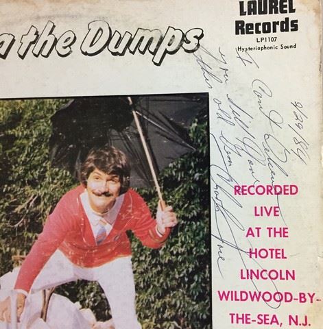 Charlie Prose "Get Outa the Dumps" Recorded Live at the Hotel Lincoln Wildwood-by-the-sea, N.J (1971) vinyl record, 18 songs between the two sides, songs include "I was in the service", "My yearly urge", "Polish Spaceship", etc., Charlie Rose autograph with personal messages stating "My best to the best, Charlie Rose" and "2/29/84 I can't believe you still have this old gem. Charlie Rose".