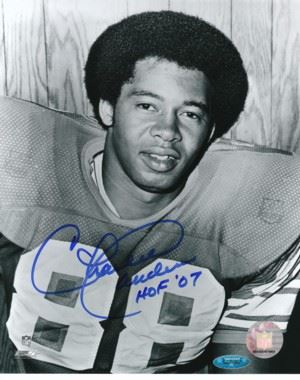 Charlie Sanders is a former American football player who played tight end for the Detroit Lions from 1968-77. On February 3, 2007, Sanders was voted into the Pro Football Hall of Fame. Charlie Sanders has hand autographed this Detroit Lions 8x10 Photo with HOF 07 inscription. TriStar Productions Hologram and Certificate of Authenticity.