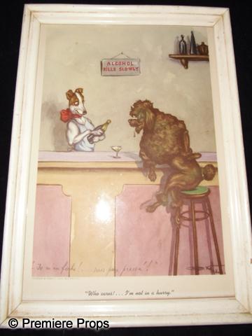 Charlie Sheen Personally Owned Artwork - From a personal collection of items owned by Charlie Sheen, this is framed reproduction artwork of two dogs in a bar with a sign saying "Alcohol Kills Slowly" and the bottom caption reads "Who Cares!... I'm not in a hurry". Includes Auction house documentation. Framed 10" x 13"