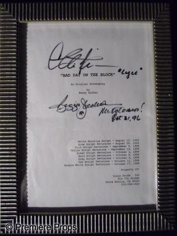 Charlie Sheen & Reggie Jackson Autographed Screenplay Cover - A framed and autographed cover sheet from the screenplay for "Bad Day on the Block". Signed by Charlie Sheen with character name "Lyle" and by Reggie Jackson with character name "Mr. October. Oct. 31, 96". From a personal collection of items owned by Charlie Sheen. Includes Auction house documentation. Framed 10.5" x 13"