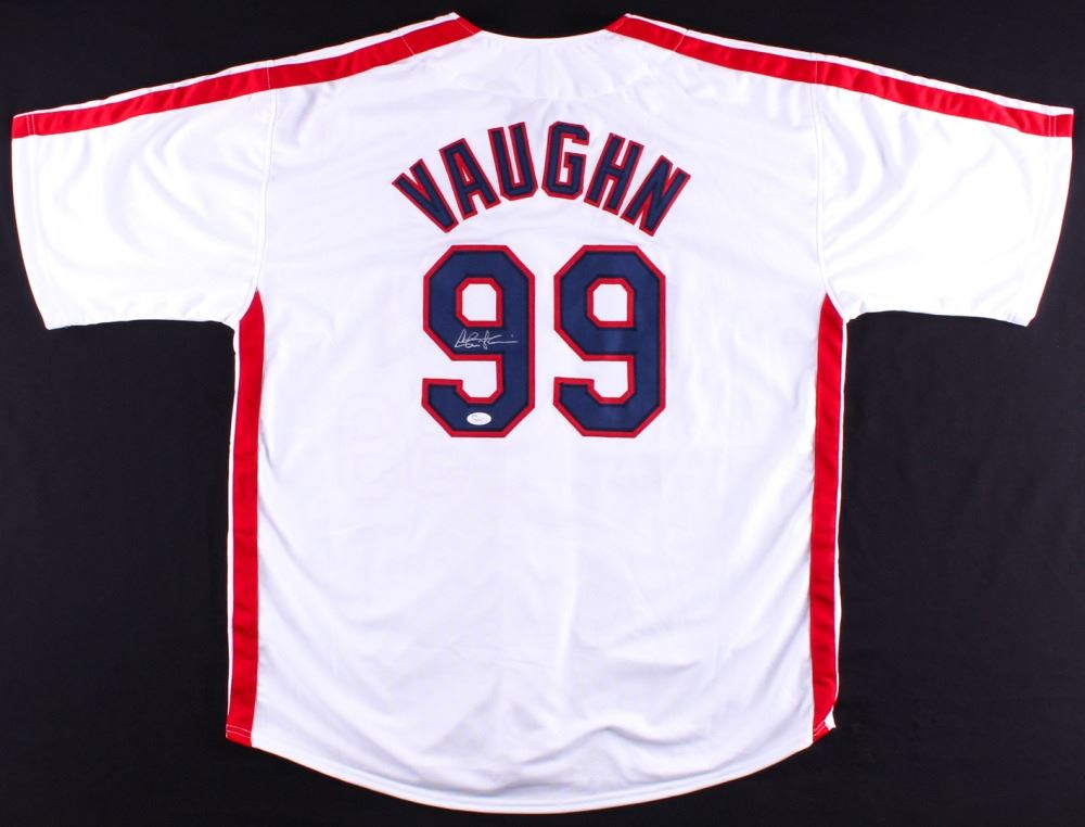 Custom on-field style jersey. Everything is sewn on, size XL. Hand-signed in silver paint pen by Charlie Sheen (Ricky Vaughn). The lot / autograph(s) includes an official James Spence Authentication (JSA) hologram and matching COA for authenticity purposes. Authentication: JSA COA.
