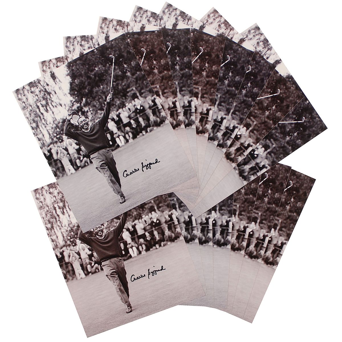 African American former professional golfer who helped desegregate the PGA. As the first African-American to play the PGA and to be inducted into the World Golf Hall of Fame, Sifford has been referred to as the Jackie Robinson of golf. Fifteen identical satin-finish 8 x 10 photos of Sifford celebrating a putt, each signed in black felt tip. In fine condition.