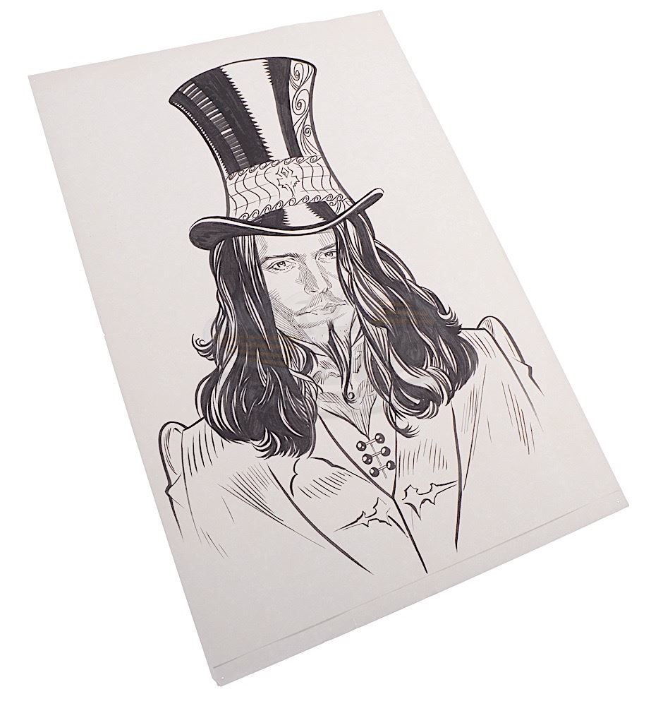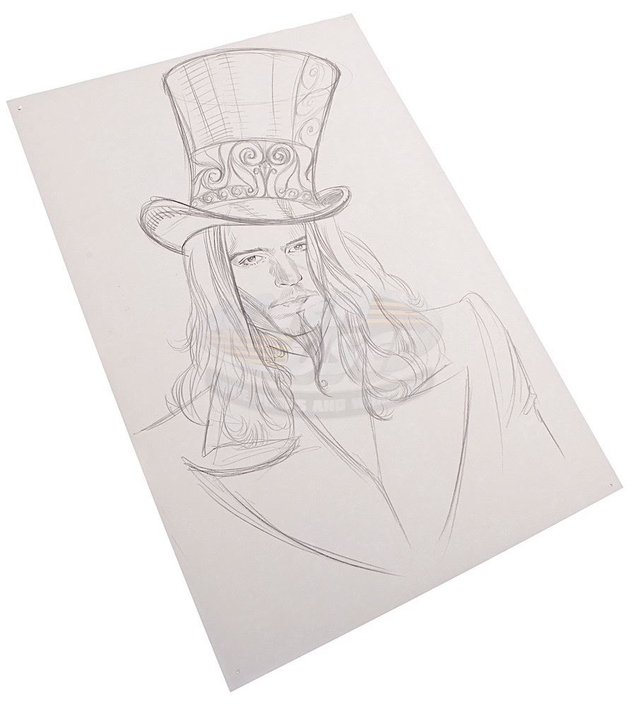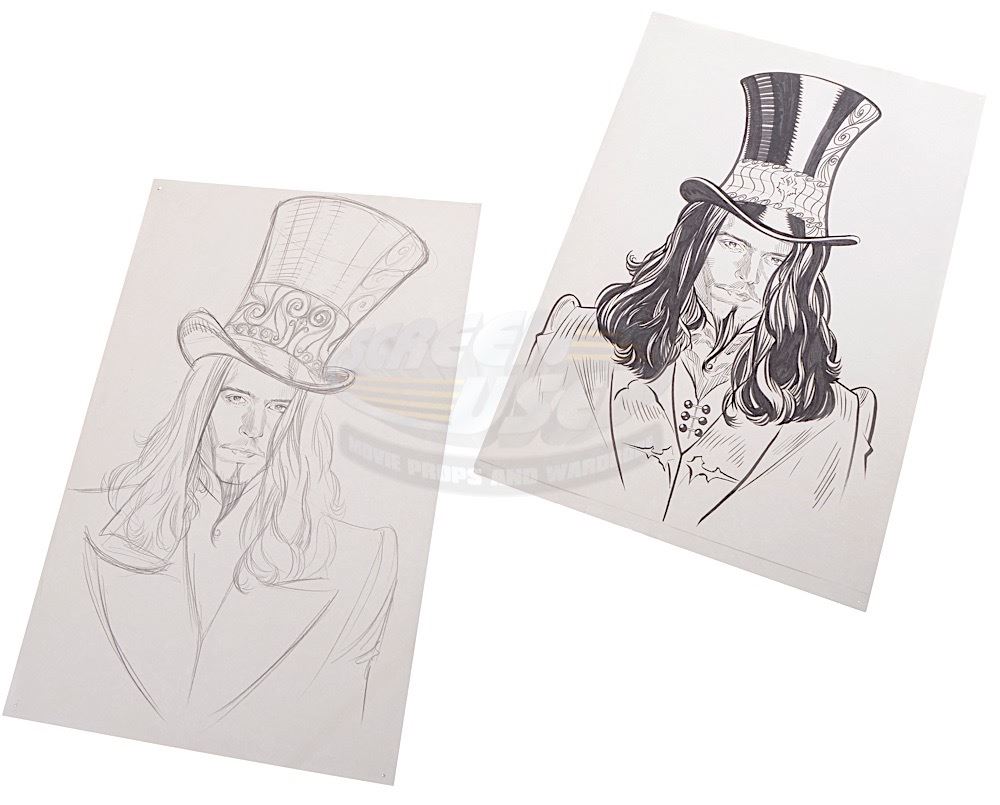(Warner Bros., 2005) A set of two production used design prints that feature Johnny Depp as "Willy Wonka". Each features a different hat design and measures 11" x 17".