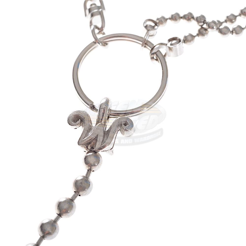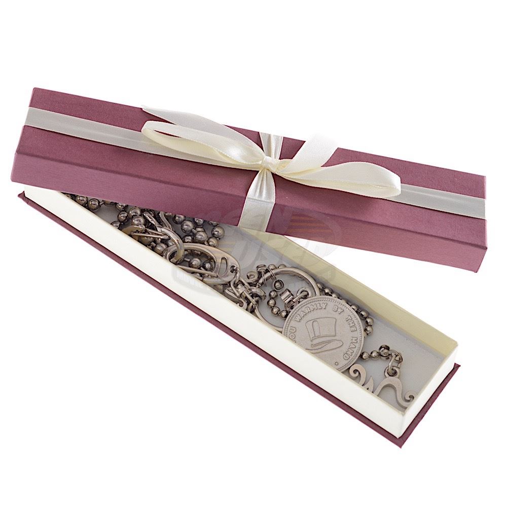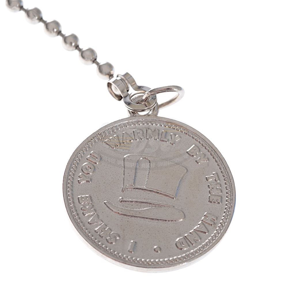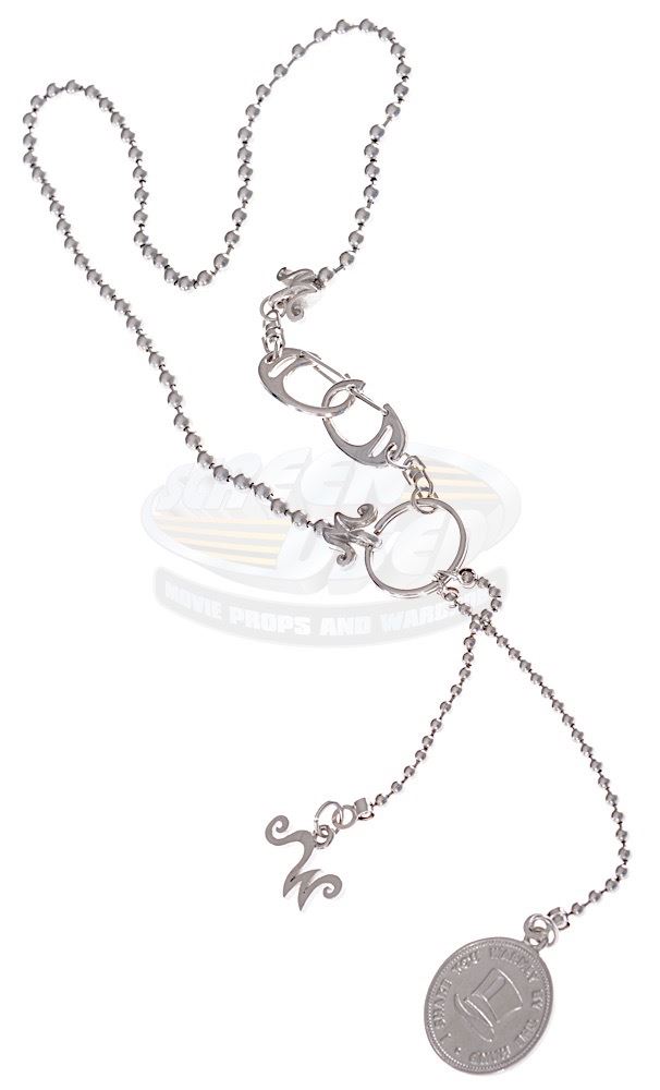 (Warner Bros., 2005) A rare crew gift given by Johnny Depp to members of the film's crew. The metal ball chain features a special Willy Wonka and "W" charms, with a small "W" at the ends. The chain remains in very good condition and comes in a small presentation box. The large Willy Wonka charm measures 1.25" in diameter.