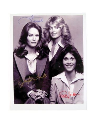 Charlie's Angels Signed By All Three B&W Photo Farrah Fawcett, Jaclyn Smith, Kate Jackson. Includes COA.
