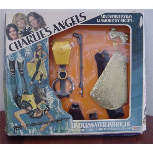 Charlie's Angels UNDERWATER INTRIGUE two complete outfits plus action gear, contains: leotard, lame gown, turban, sandals, tank, mask, flilppers, spear gun.