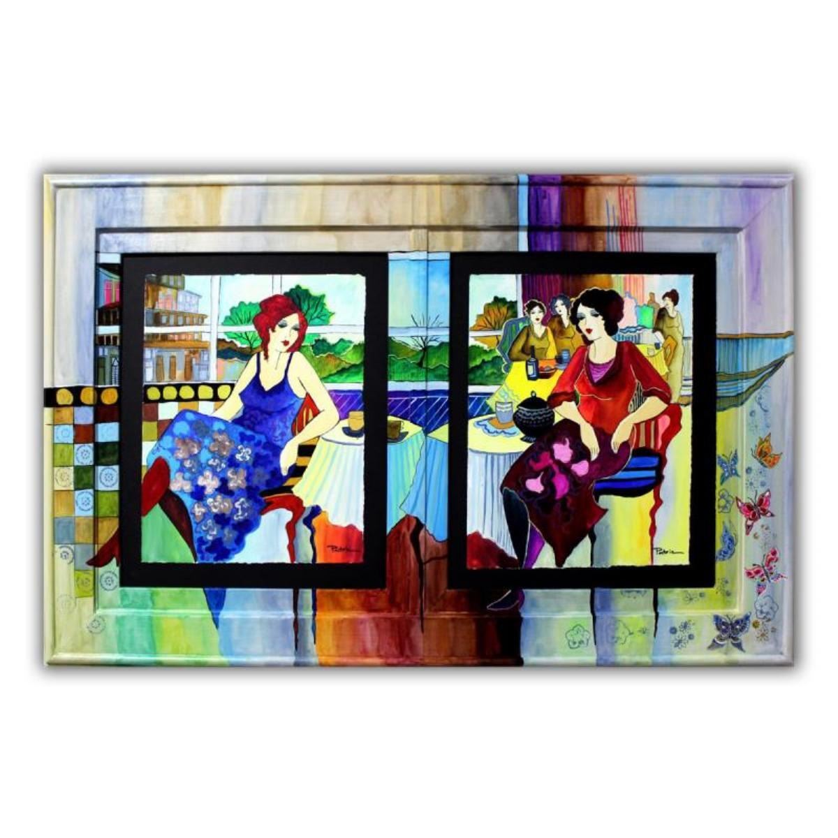 Charlotte & Hannah by Govezensky Original. Patricia Govezensky, "Charlotte & Hannah" set of 2 hand Signed Original Watercolors with Hand Painted Frame with Letter of Authenticity. Each piece Measures Approximately 27" x 34" (framed), 14" x 11" (piece).