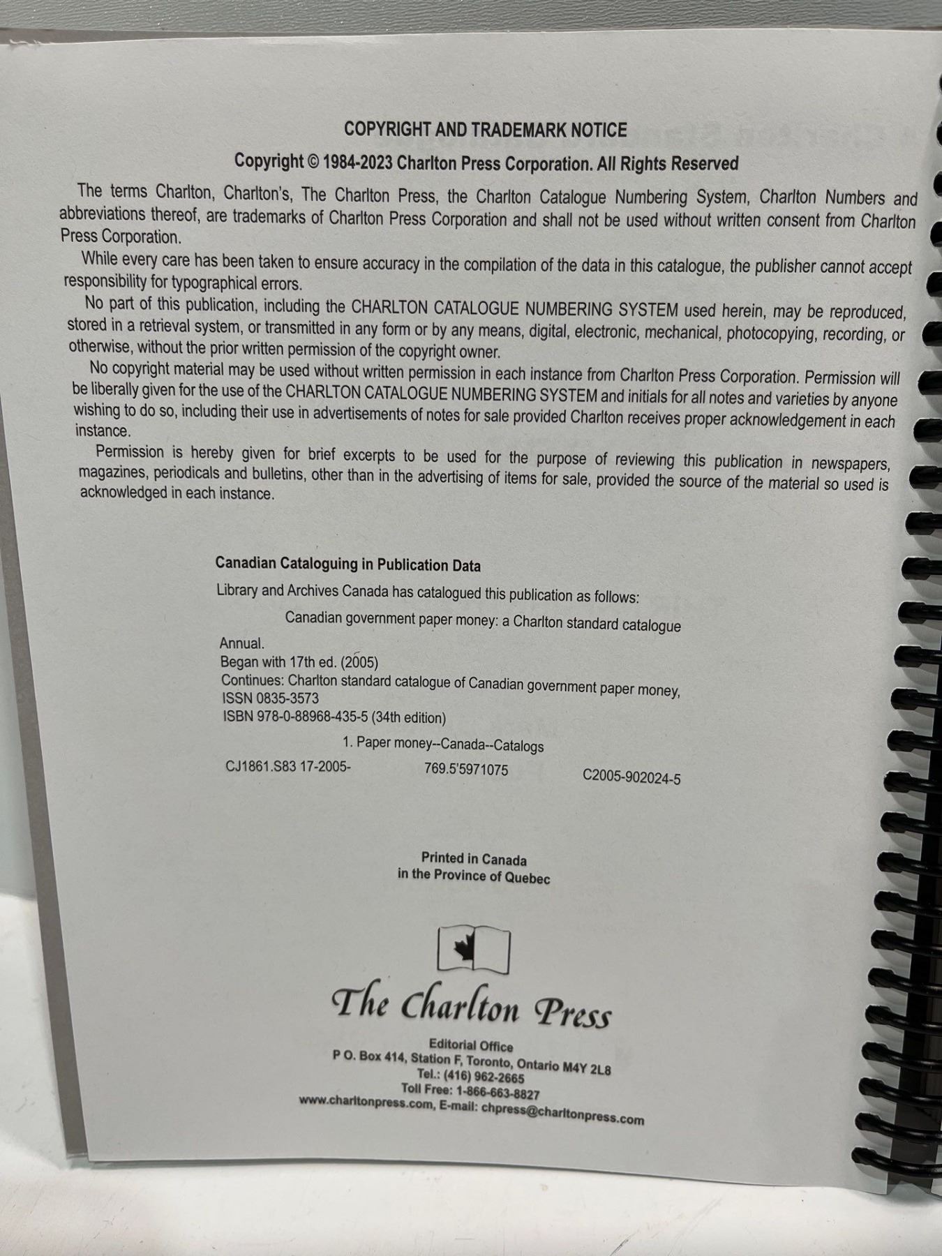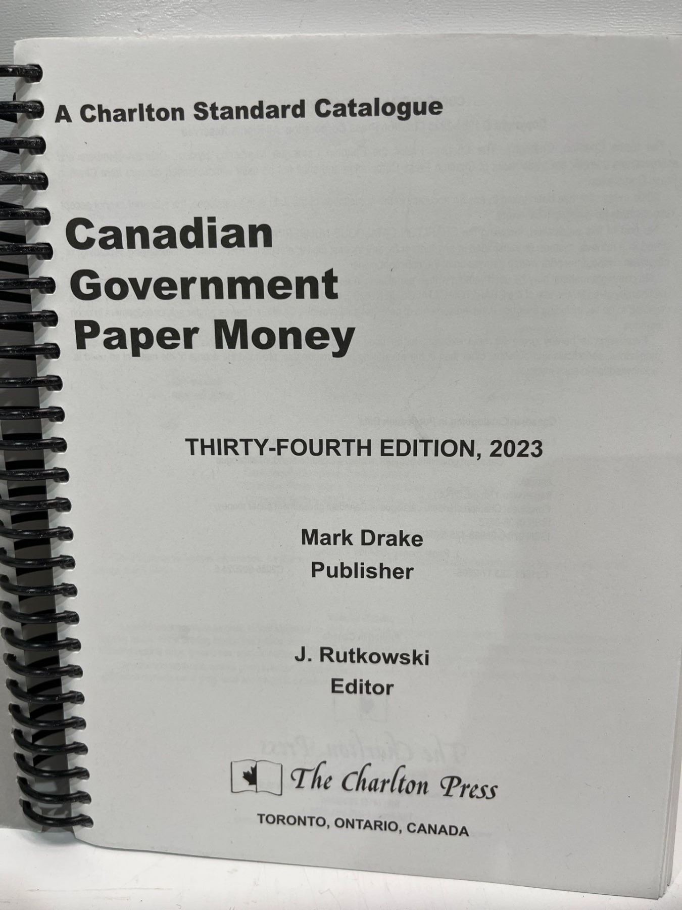Charlton Catalogue - Canadian Government Paper Money 34th Edition 2023