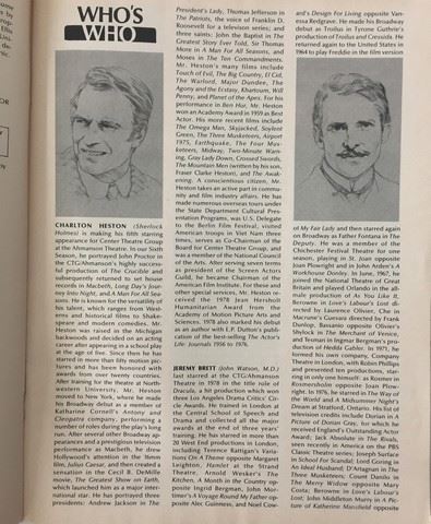 Program book for "The Crucifier Of Blood" (January 1981) Sherlock Holmes (Charlton Heston) hand signed by Charlton Heston. (11"x8")