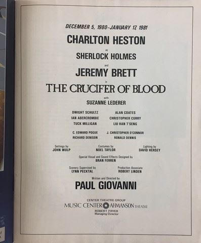 Program book for "The Crucifier Of Blood" (January 1981) Sherlock Holmes (Charlton Heston) hand signed by Charlton Heston. (11"x8")