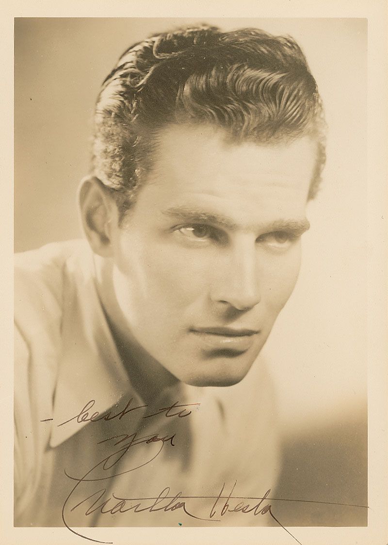 Early vintage matte-finish 5 x 7 head-and-shoulders photo, signed in black ink, “—best to you, Charlton Heston.” In fine condition.
