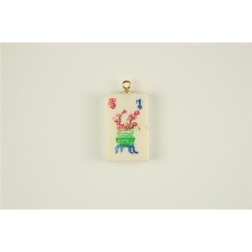 This would be a terrific Charm or Pendant for a Mah Jong player! It is a Mah Jong tile with a 14k Gold loop at the top. You can put a chain thru it and wear as a pendant or hang it from your charm bracelet. Either way it is sure to bring good luck!