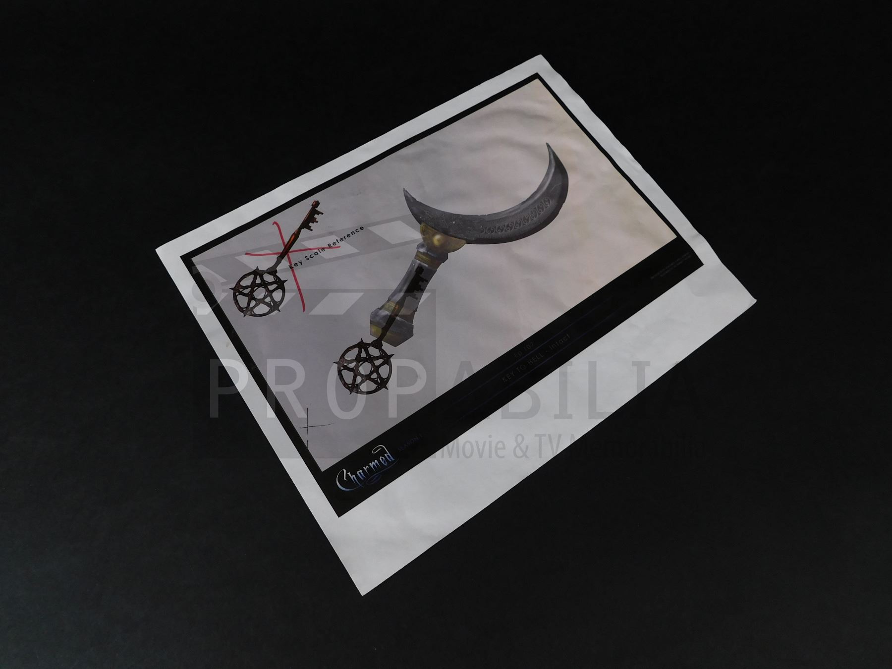 Propabilia guarantees the attribution of each lot of Property as stated in the title block of that lot of Property in the Auction catalogue, each lot of property comes with its own Certificate of Authenticity (COA). Bidders should be aware that multiple examples of props and costumes are frequently used during production (hence the Propmasters saying 'one and done'), usually as few as 3 or as many as 6 or more pieces may be used to represent the item on screen. It is often impossible to determine whether a specific piece has been used on-camera. Any specific details about the property known to Propabilia will be noted within the description, but no warranties are given by Propabilia as to that description.
