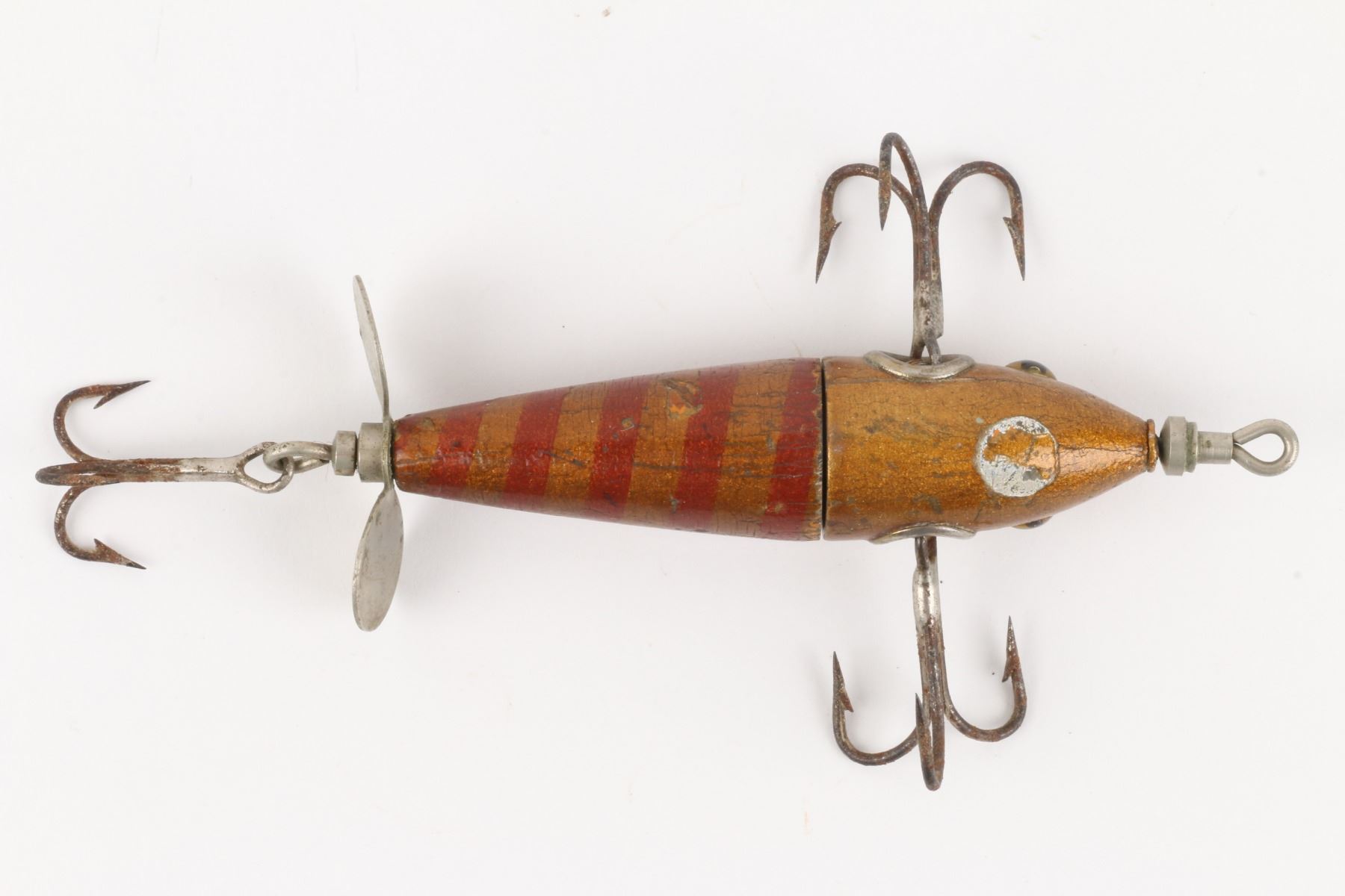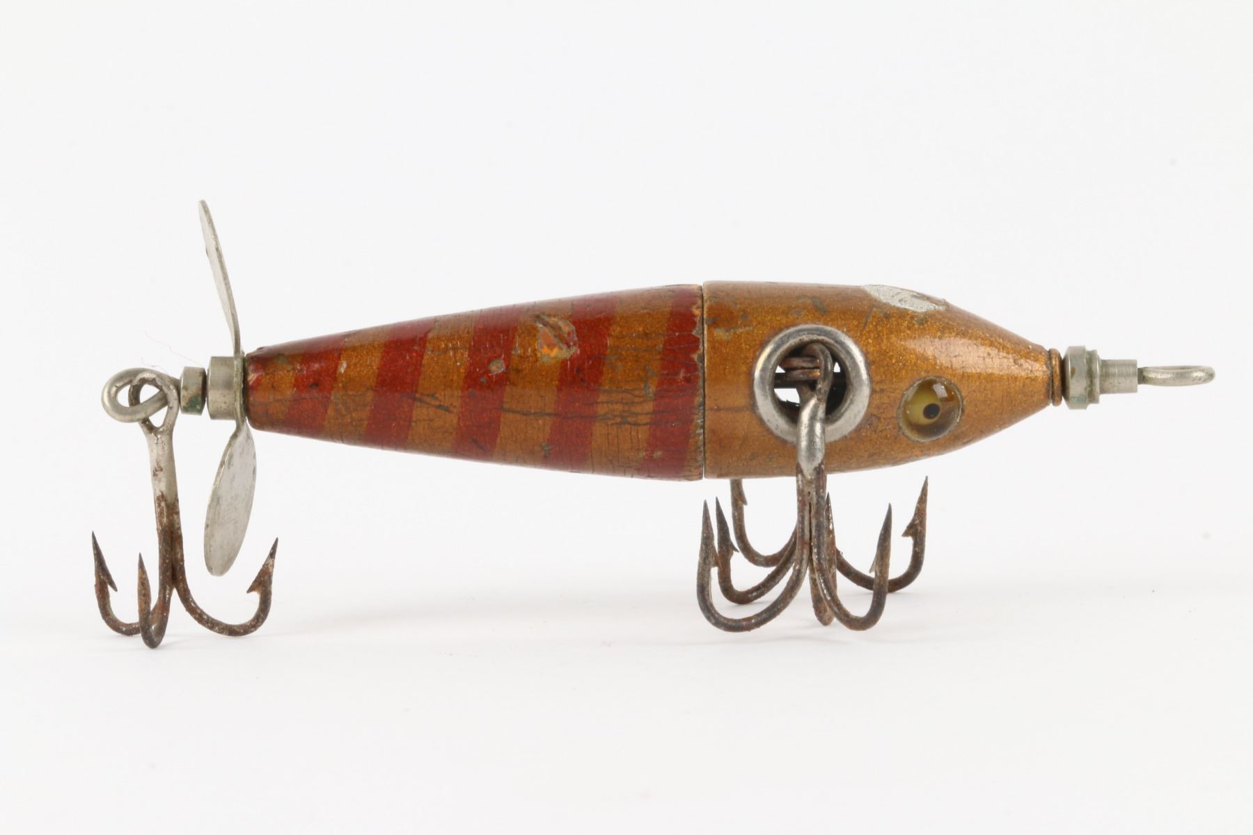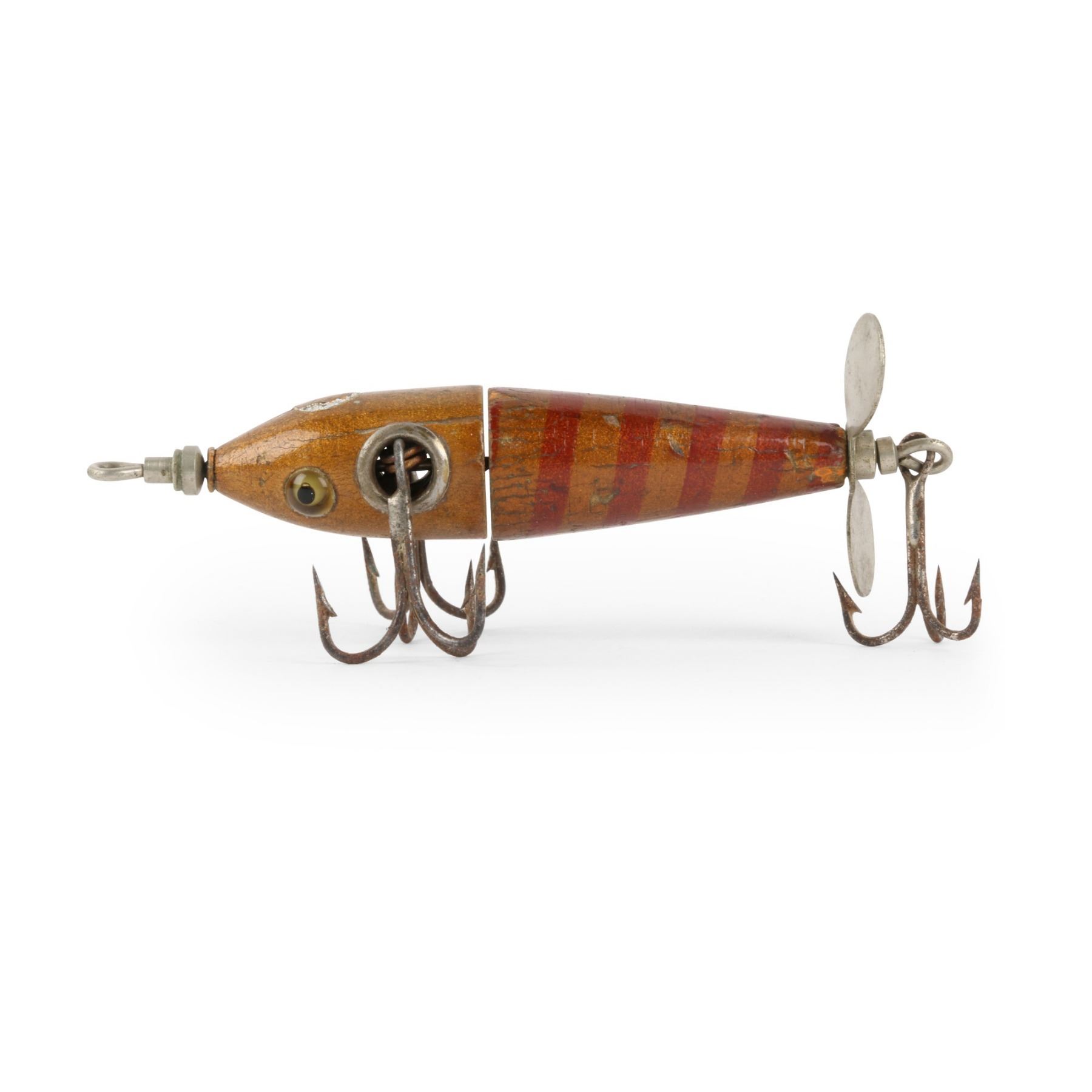 Charmer Minnow Company, United States. 1910s. Material: Wood. Quantity: 1. Grade: G. 4.25" x .75" x .75" Est. $500-600.