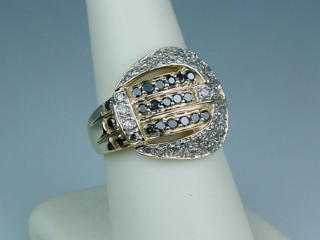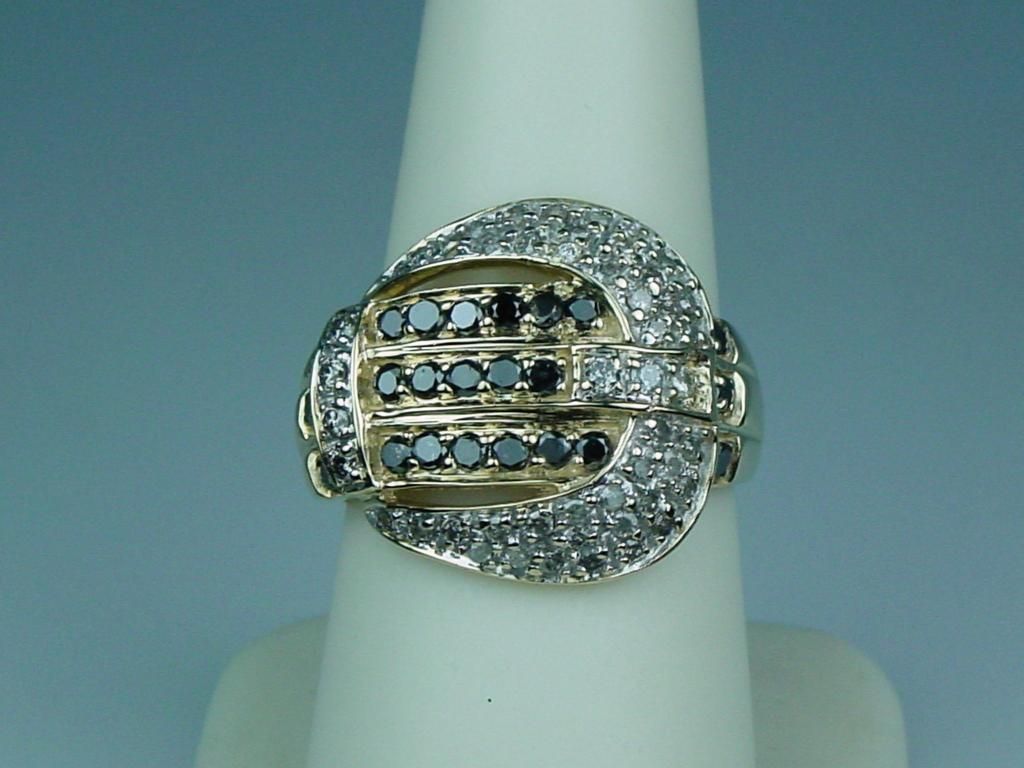 Charming 10 karat yellow gold ladies ‘Buckle ‘design ring set with over 70 round diamonds and sapphires weighing approx. 2.00 carats. Retail $1,500-$2,000 Estimate $600-$900 Labor intensive.
