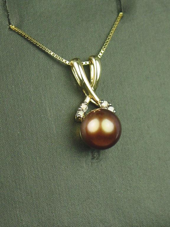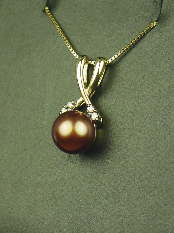 Charming 14K YG Ladies Pendant Set with a center black Pearl averaging 7.50mm in diameter and 4 side diamonds. Retail $995.00Set with a center black Pearl averaging 7.50mm in diameter and 4 side diamonds. Retail $995.00