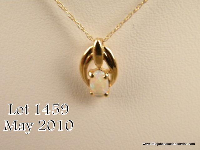 Charming 18 karat yellow gold ladies pendant set with a nice color Australian opal. Retail $550.00 Estimate $100-$200