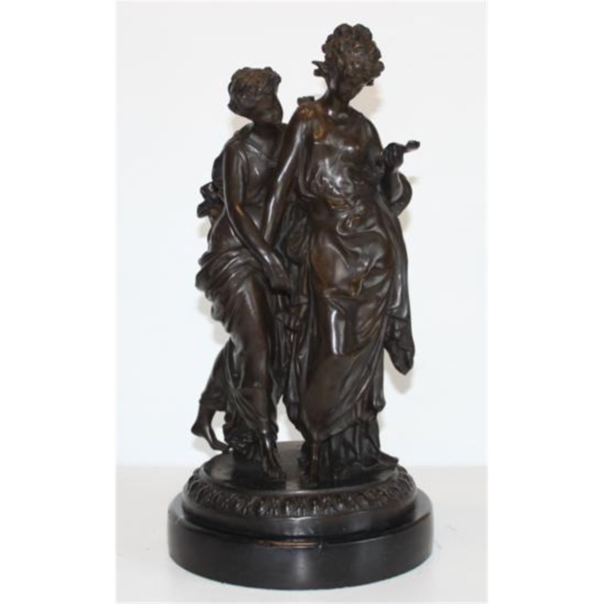 Victorian Sisters Bronze Sculpture, After Chiparus 16"H x 8"W x 8"D 26 lbs. This bronze sculpture was produced using the "Lost Wax" casting method. The"Lost Wax" Cast method is the most precise metal casting technique in existence, ensuring exquisite detail of the original host model which is usually sculpted in clay or wax. This "Lost Wax" casting method is an extremely labor intensive and expensive process, but the end results produce a Heirloom Quality Masterpiece!