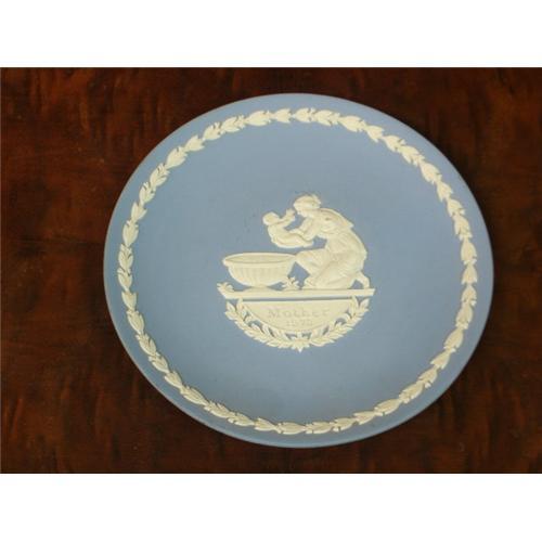 Charming Set of 4 Wedgwood Plates. There are 3 light blue plates and one dark blue plate. Each plate has a different design. Each one also says Mother at the bottom and 1973, 1974, 1975, and 1976.