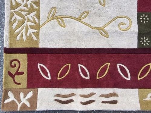 Charming and colorful high quality Gabbeh design Rug. 100% natural, hand woven, vegetable dye, superior quality worsted wool pile on cotton foundation. Gabbeh rugs are woven by nomadic tribes. The intriguing notion about Gabbeh rugs is the fact that the birthplace of such a sophisticated and contemporary designs is among tribal nomads with very little education, if any at all. In fact, it is only then, that one would come to realize and appreciate the fact that this is man's intrinsic genius way of celebrating life. Hence producing such a sophisticated, contemporary looking and captivating pieces. This Gabbeh rug has a fairly lush pile and the knots are well packed. This lovely piece is rather heavy. Size 6 feet X 4 feet. Country of origin: Tibet.