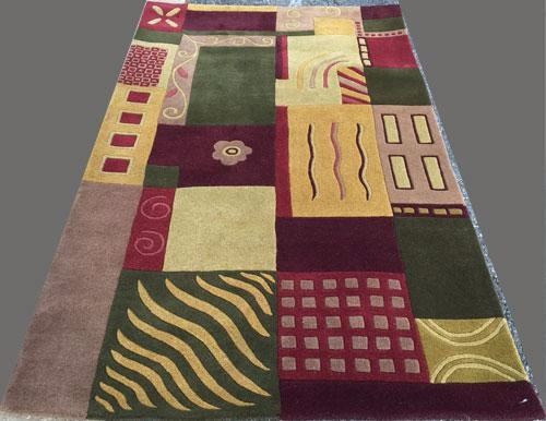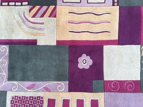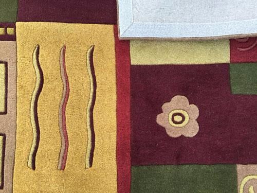 Charming and colorful high quality Gabbeh design rug. 100%natural, hand woven, vegetable dye, superior quality worsted wool pile on cotton foundation. Gabbeh rugs are woven by nomadic tribes. The intriguing notion about Gabbeh rugs is the fact that the birthplace of such a sophisticated and contemporary designs is among tribal nomads with very little education, if any at all. in fact, it is only then, that one would come to realize and appreciate the fact that this is man's intrinsic genius way of celebrating life. Hence producing such a sophisticated, contemporary looking and captivating pieces. This Gabbeh rug has a fairly lush pile and the knots are well packed. This lovely piece is rather heavy. Size: 7 feet 6 inches X 4 feet 6 inches. Country of Origin: Tibet.