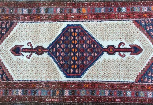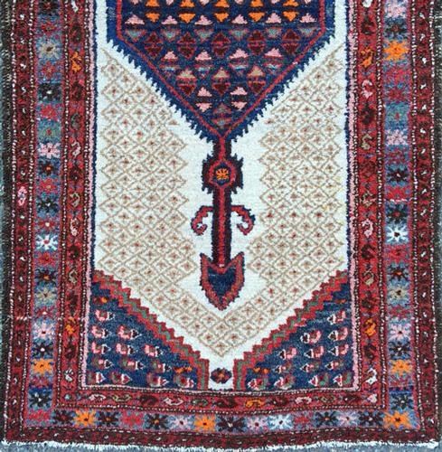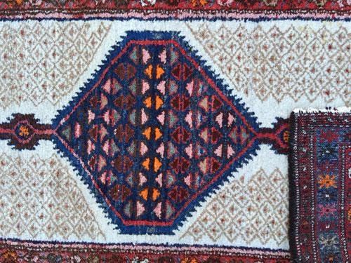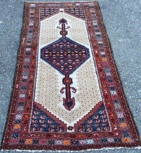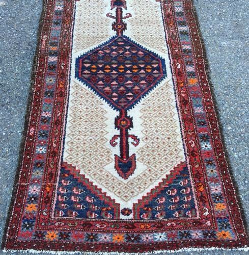 Charming and exquisite fine Persian asad-abad Hamedan Rug. 100%natural, hand woven, vegetable dye, baby lamb's wool pile on cotton foundation. This is a enchanting assad-abad Hamedan milk & honey design with a colorful central medallion and tear drops over a lovely warm toned beige background. The village of asad-abad produces a very limited number of Hamedans. However, the limited few that are produced are superior in terms of wool quality, design and color scheme. It is intriguing to mention that these vibrant and charming pieces are woven by the women of the household with very little education, if any at all. This asad-abad Hamedan is a perfect example of man's intrinsic genius striving for beauty and perfection, and in this case, in the form of a hand woven rug, an art underfoot. This piece has a fairly lush and glowing wool pile, plus a well pronounced design, which is indicative of a superior quality. this asad-abad Hamedan is a diamond in the rough. Size: 6 feet X 3 feet 2 inches. Country of Origin: Iran.