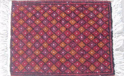 Charming fine Dehati baft Meshg-Abad design small Rug. 100%natural, vegteble dye, hand woven, worsted wool pile on cotton foundation. meshg-abad rugs are hand woven by semi-nomadic people. this is lovely example of a meshg-abad rug with a fairly lush pile. the worsted wool pile gives this piece a glowing character. size: 1 feet x 1 feet 5 inches. Country of Origin: Iran.