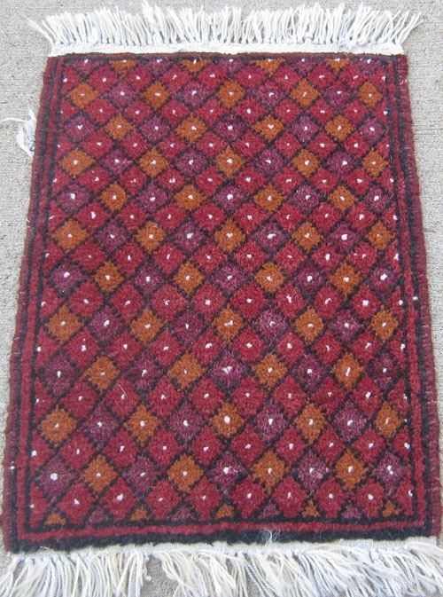 Charming fine meshg-abad design small Rug. 100%natural, vegteble dye, hand woven, worsted wool pile on soft wool foundation. Meshg-abad rugs are hand woven by semi-nomadic people. this is lovely example of a meshg-abad rug with a fairly lush pile. the worsted wool pile gives this piece a glowing character. size: 1 feet x 1 feet 5 inches. Country of Origin: Iran.