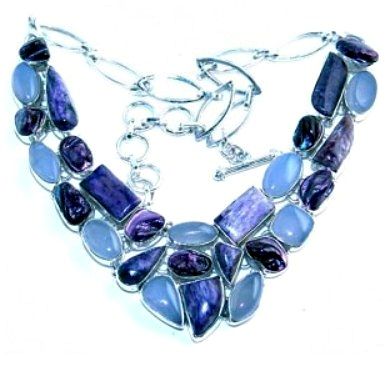 Silver and Charoite & Chalcedony Necklace. Allow 6 to 8 weeks for delivery.
