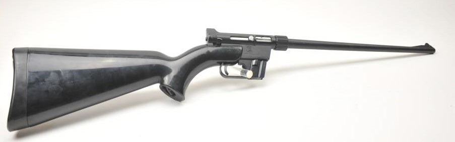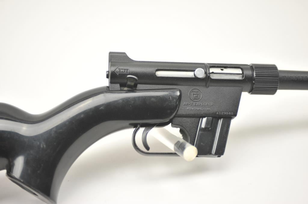 Charter Arms AR-7 Explorer takedown survival semi-automatic rifle, .22 Long Rifle caliber, Serial #A129848. The rifle is in fine overall condition with a 16” barrel. The rifle retains the majority of the matte bluefinish with light wear from carry and use. The synthetic butt stock is in very good condition. The bore is bright and the action functions well. The lot includes one correct magazine. Est.: $200-$400.(Modern).
