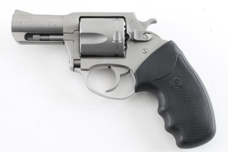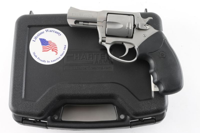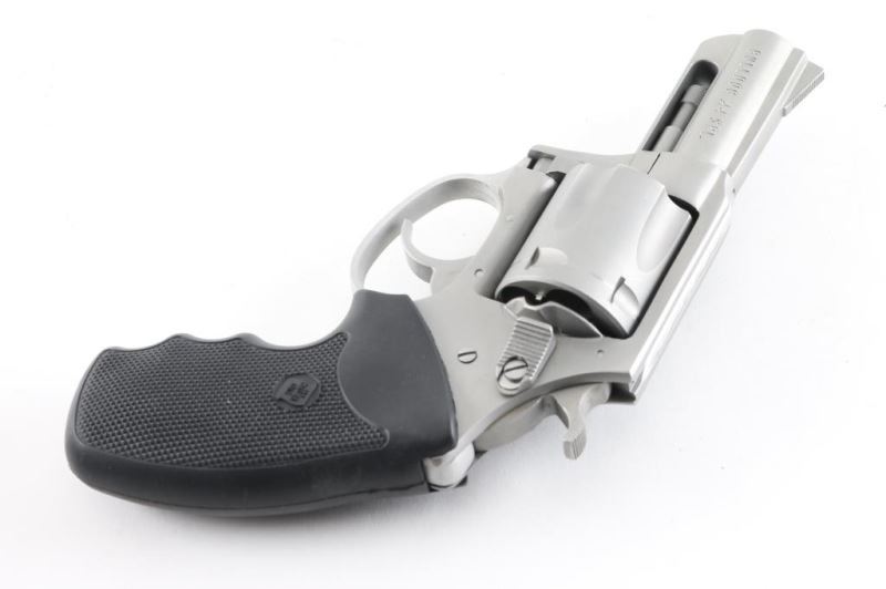 Double action revolver features stainless steel construction, 2.5" barrel, 5 shot fluted cylinder, fixed sights, checkered black polymer finger groove grips, serrated hammer spur. Bore is very good. Satin finish is very good with bright spots from rubbing wear. Includes factory black plastic case with papers. Condition is near NRA Excellent *** Modern Firearm ***