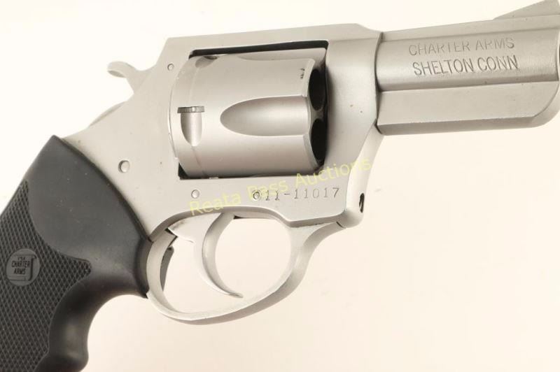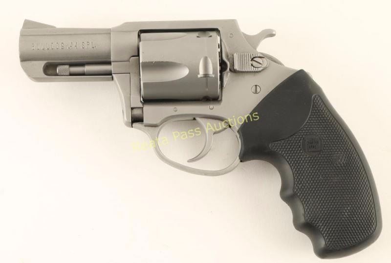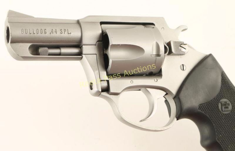 Stainless steel double action snub-nosed revolver chambered in .44 Special. Features a satin finish, 2.5" ribbed barrel, shrouded ejector rod, blade front sight, square notched rear sight, fluted five shot cylinder, smooth trigger, serrated hammer spur and factory two-piece checkered black rubber grips. Revolver exhibits only light wear showing a drag line and a few minor scuffs. Action is smooth with tight lock-up, bore is very good and rubber grips are near fine. Condition is very good+. ***Modern Firearm***